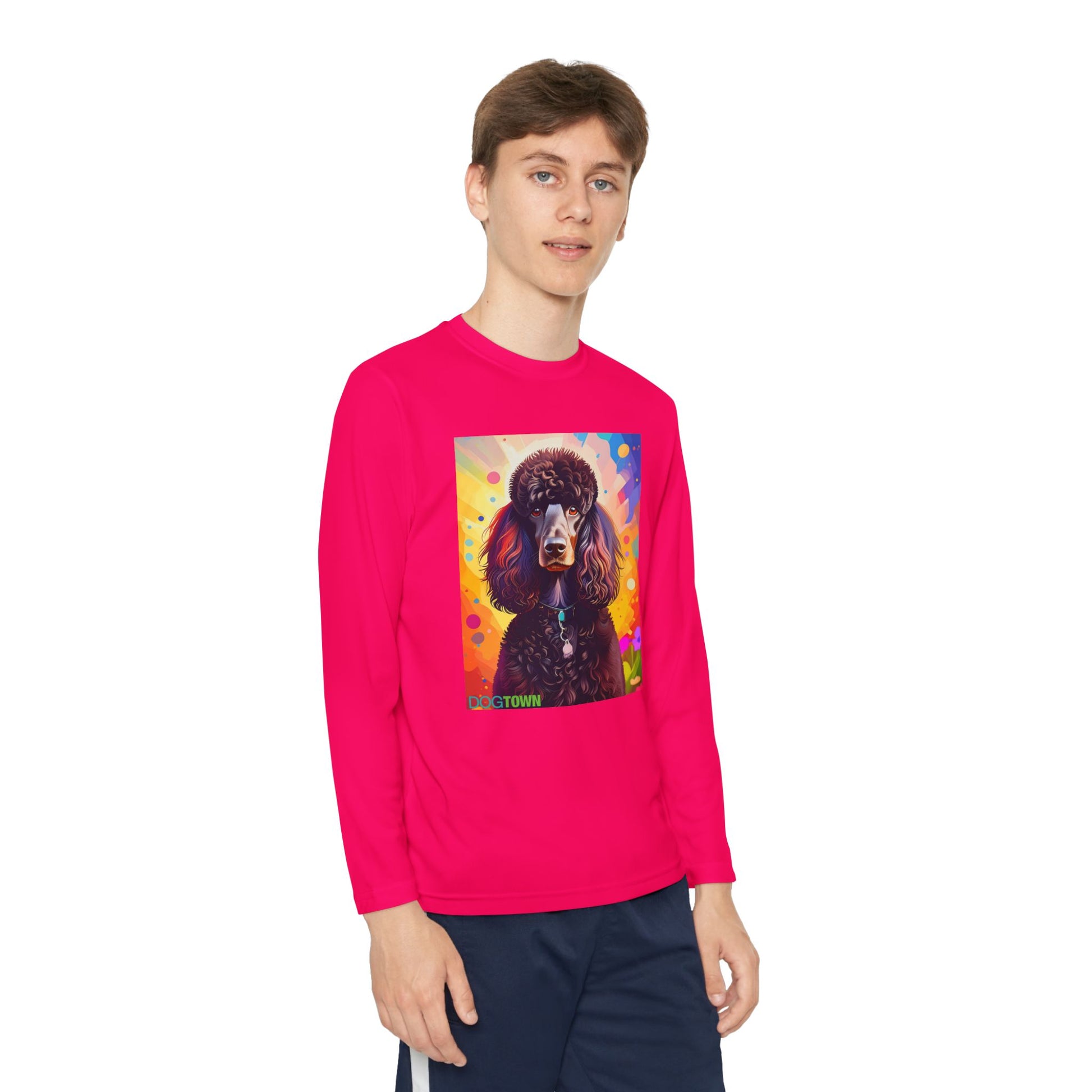 Pup Art Canvas - Kid's Sport Long Sleeve Tee (Standard Poodle)