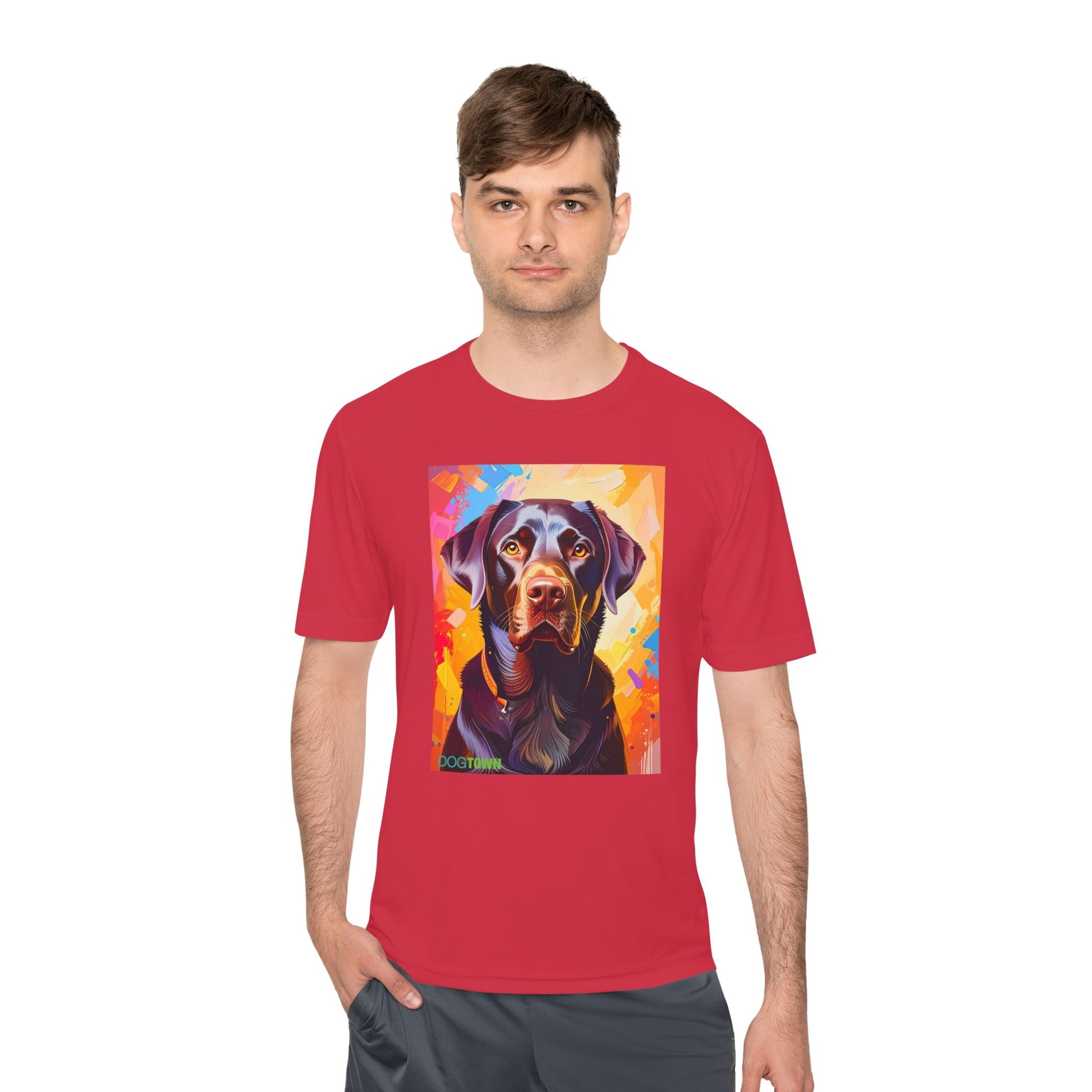 Pup Art Canvas Unisex Moisture Wicking Tee (Chocolate Lab)