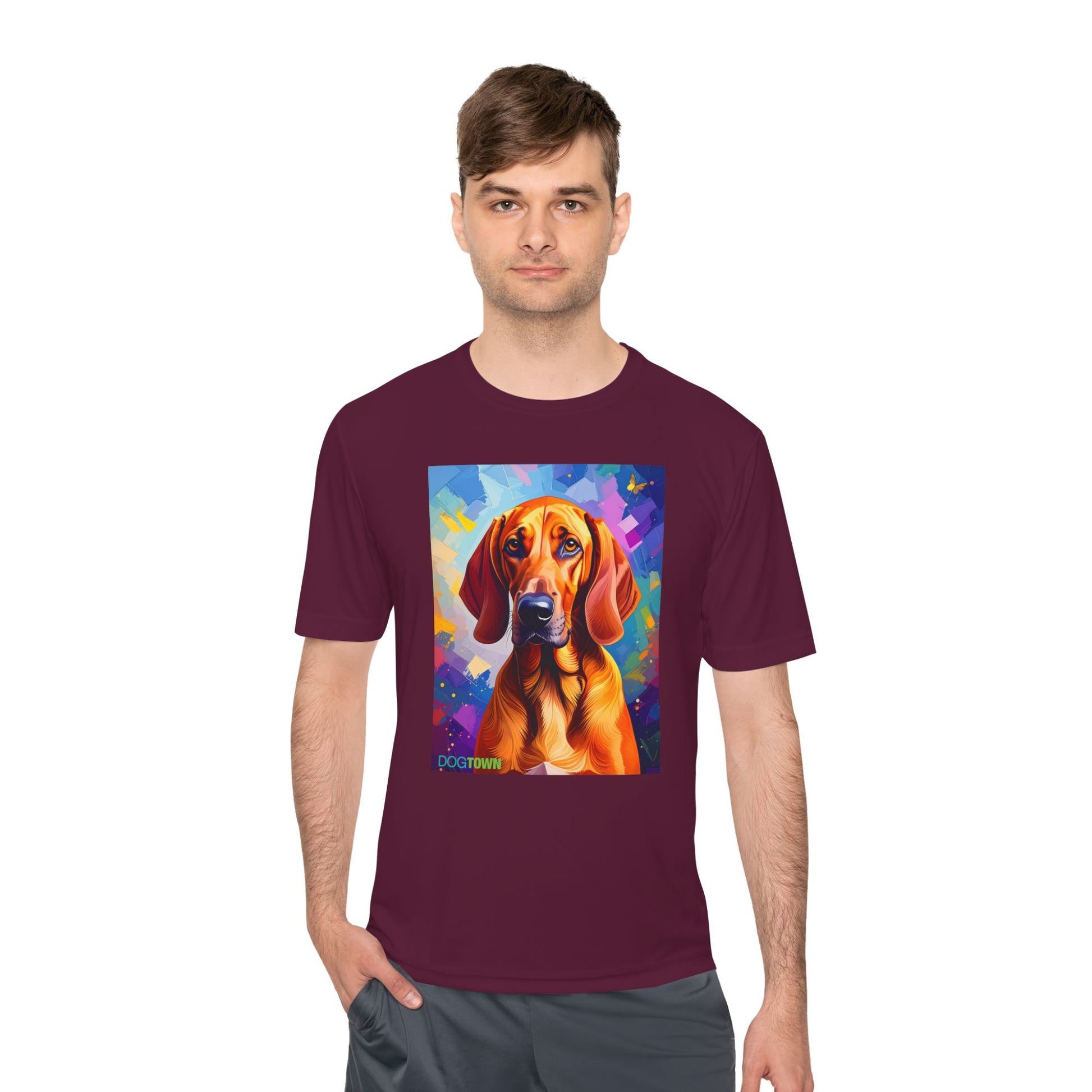 Pup Art Canvas Unisex Moisture Wicking Tee (Redbone Coonhound)