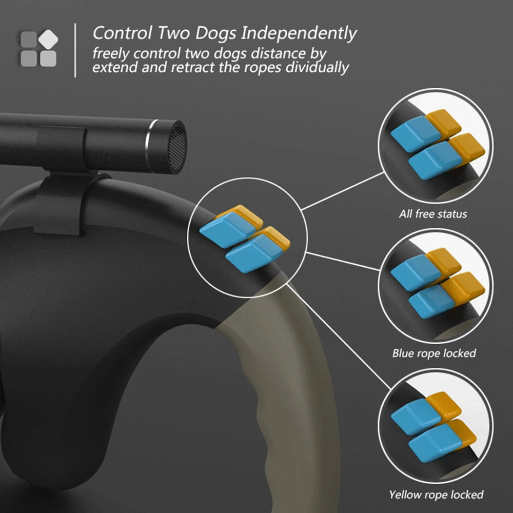 Retractable Double Pet Supplies Rotation Pet Rope with Light Dual Dog